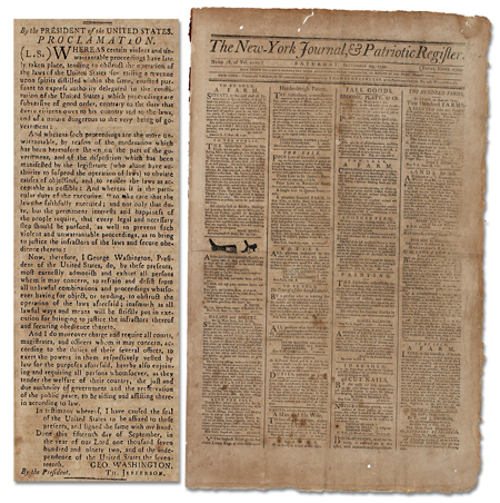 [GEORGE WASHINGTON]. New York Journal & Patriotic Register. September 29, 1792. The proclamation appears on page 2 of 4 pages. #22707 $900